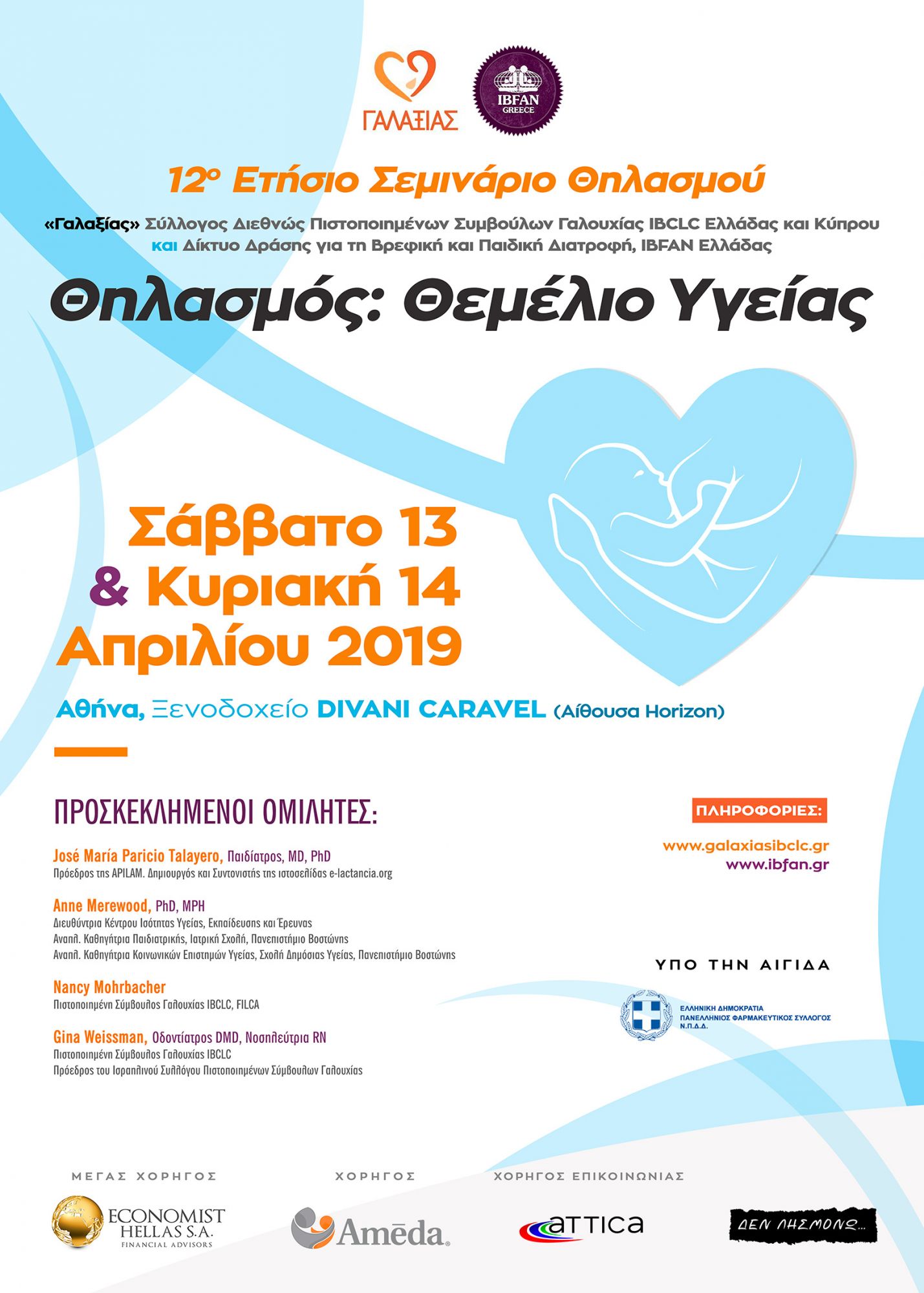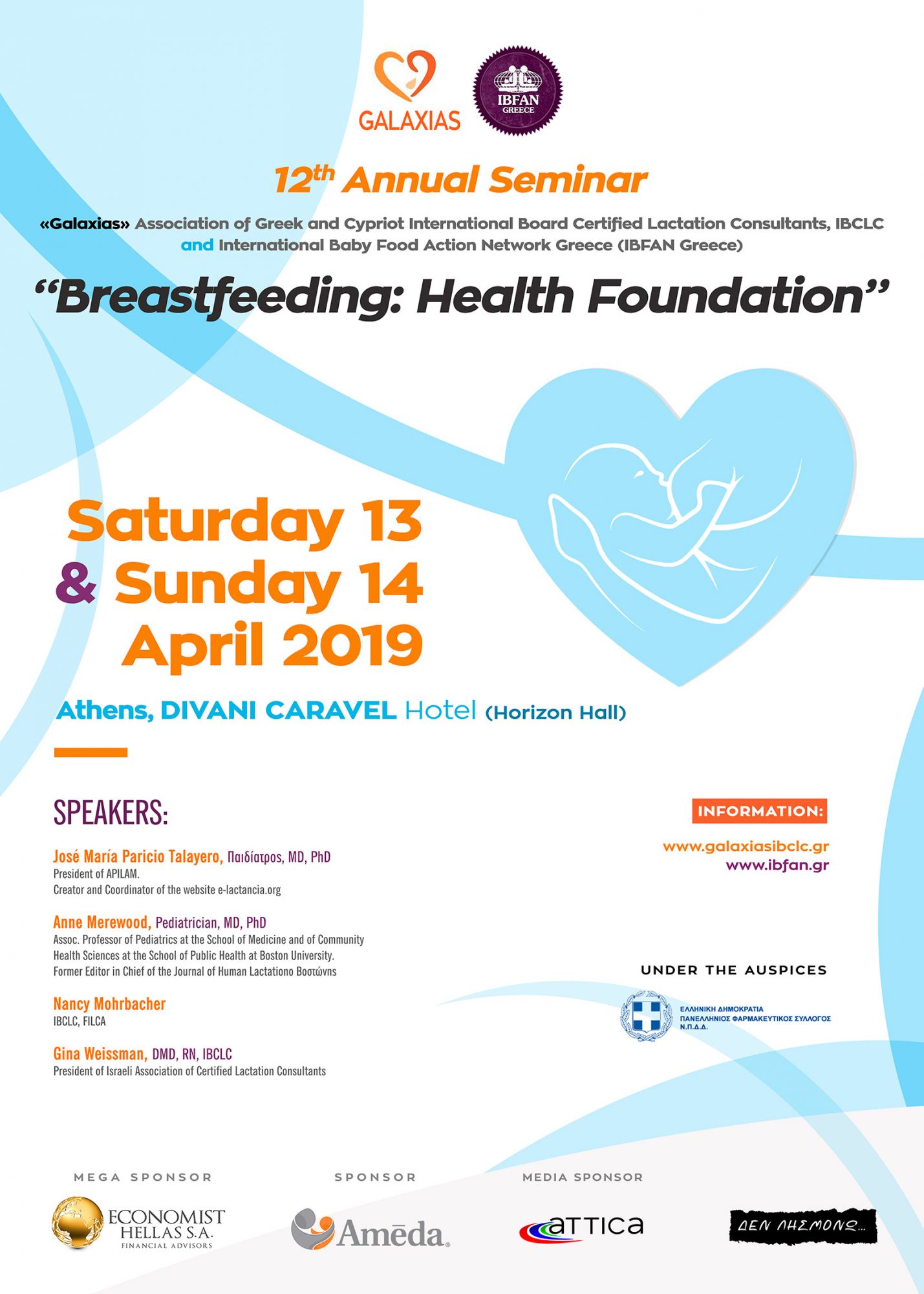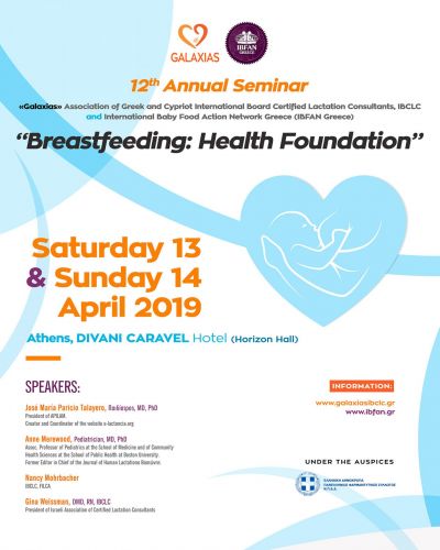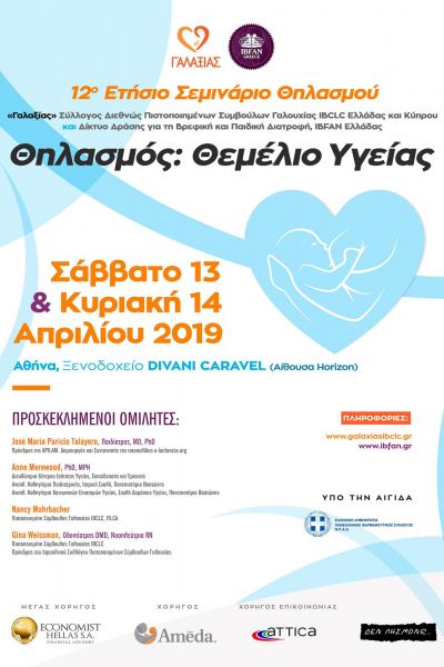 12ο Ετήσιο Σεμινάριο “Θηλασμός: Θεμέλιο Υγείας», Σάββατο 13 και Κυριακή 14 Απριλίου 2019, Αθήνα, Ξενοδοχείο DIVANI CARAVEL Αίθουσα Horizon