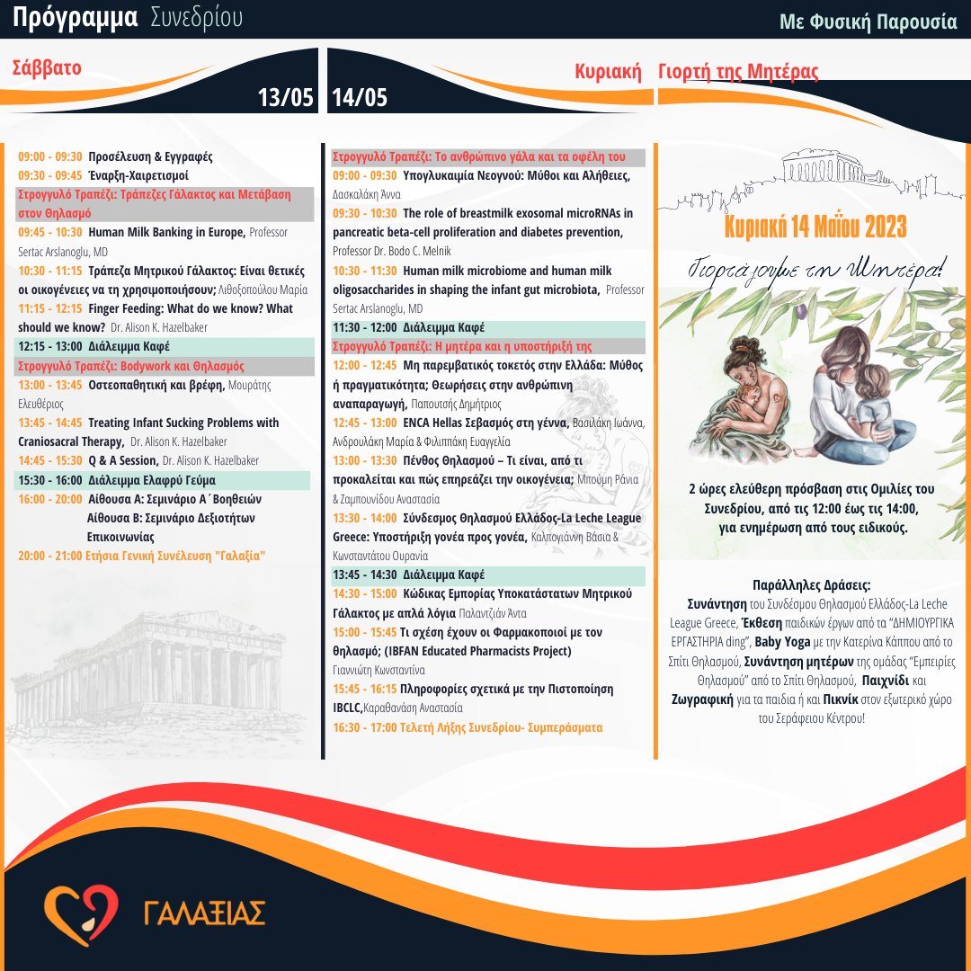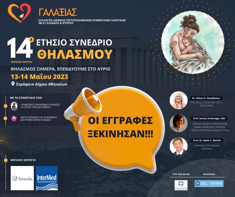 Ο Γαλαξίας διοργανώνει το 14ο Συνέδριο Μητρικού Θηλασμού, σε συνεργασία με τον Σύνδεσμο Θηλασμού Ελλάδος La Leche League Greece και το Δίκτυο Δράσης για την Βρεφική και την Παιδική Διατροφή IBFAN Ελλάδας, στο Σεράφειο του Δήμου Αθηνών.