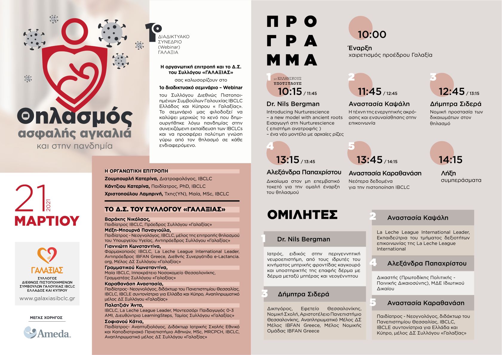 Ο Σύλλογος Διεθνώς Πιστοποιημένων Συμβούλων Γαλουχίας IBCLC Ελλάδος και Κύπρου "Γαλαξίας" σας προσκαλεί στο 1ο Διαδικτυακό Σεμινάριο Μητρικού Θηλασμού.