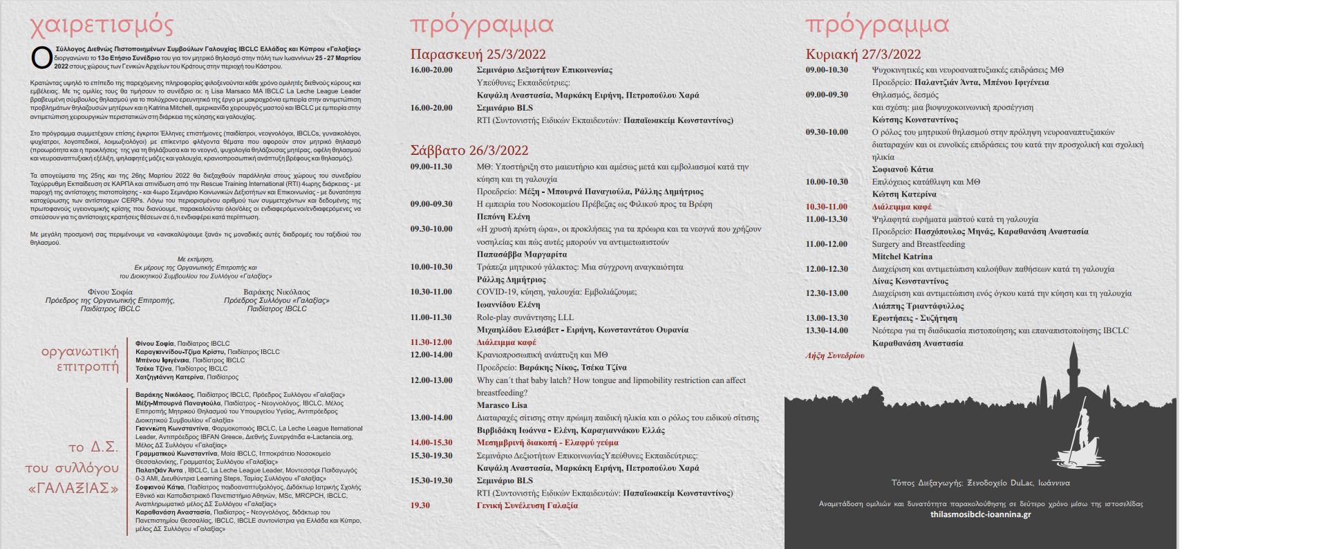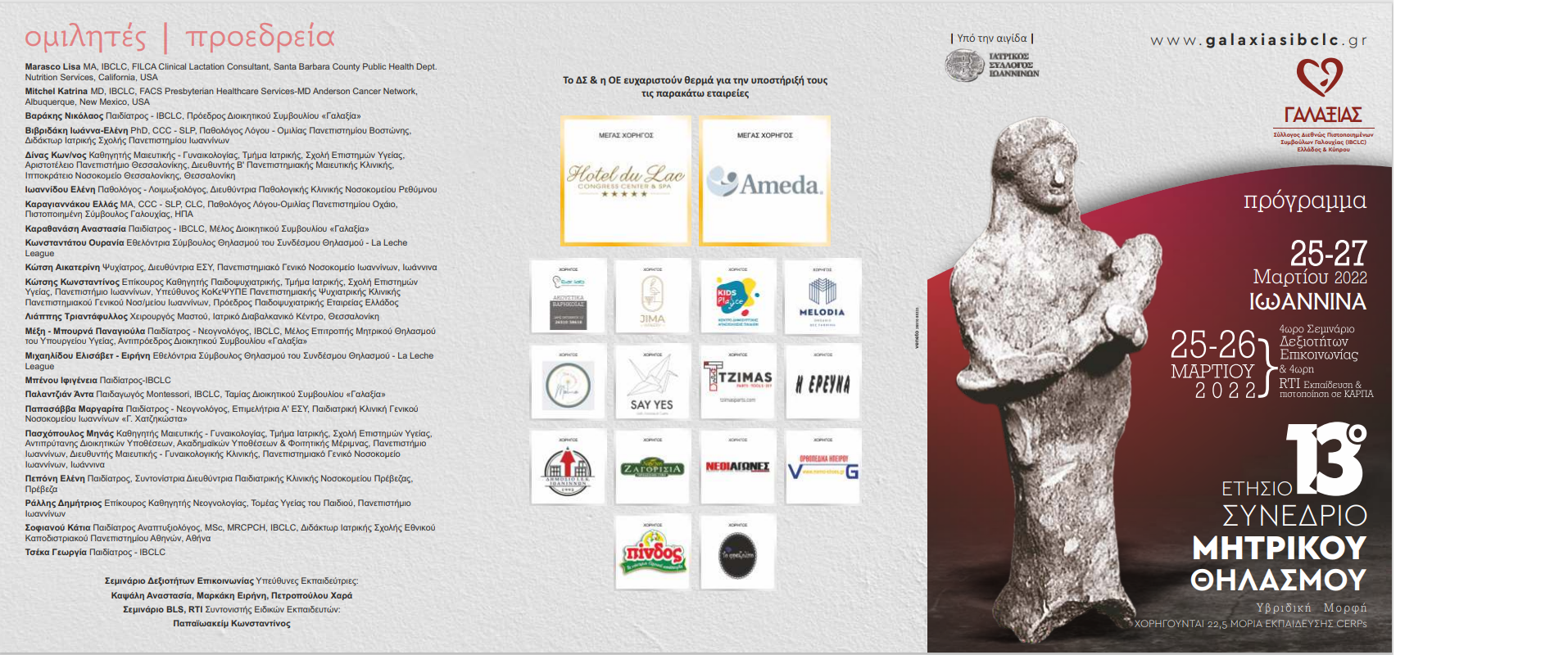 O Σύλλογος Διεθνώς Πιστοποιημένων Συμβούλων Γαλουχίας IBCLC Ελλάδας και Κύπρου «Γαλαξίας» διοργανώνει το 13ο Ετήσιο Συνέδριο του για το μητρικό θηλασμό στην πόλη των Ιωαννίνων 25-27 Μαρτίου 2022 στο ξενοδοχείο Du LAC.
